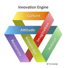 Seelig has created a new model to help explain creativity and innovation. It’s called the Innovation Engine and it looks like this: